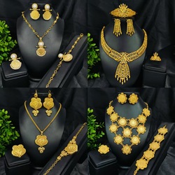 ชุดเครื่องประดับชุบทอง24K 2025ต่างหูสร้อยคองานแต่งงานต่างหูเครื่องประดับทอง24K อินเดียชุดเครื่องประดับแฟชั่นดูไบ